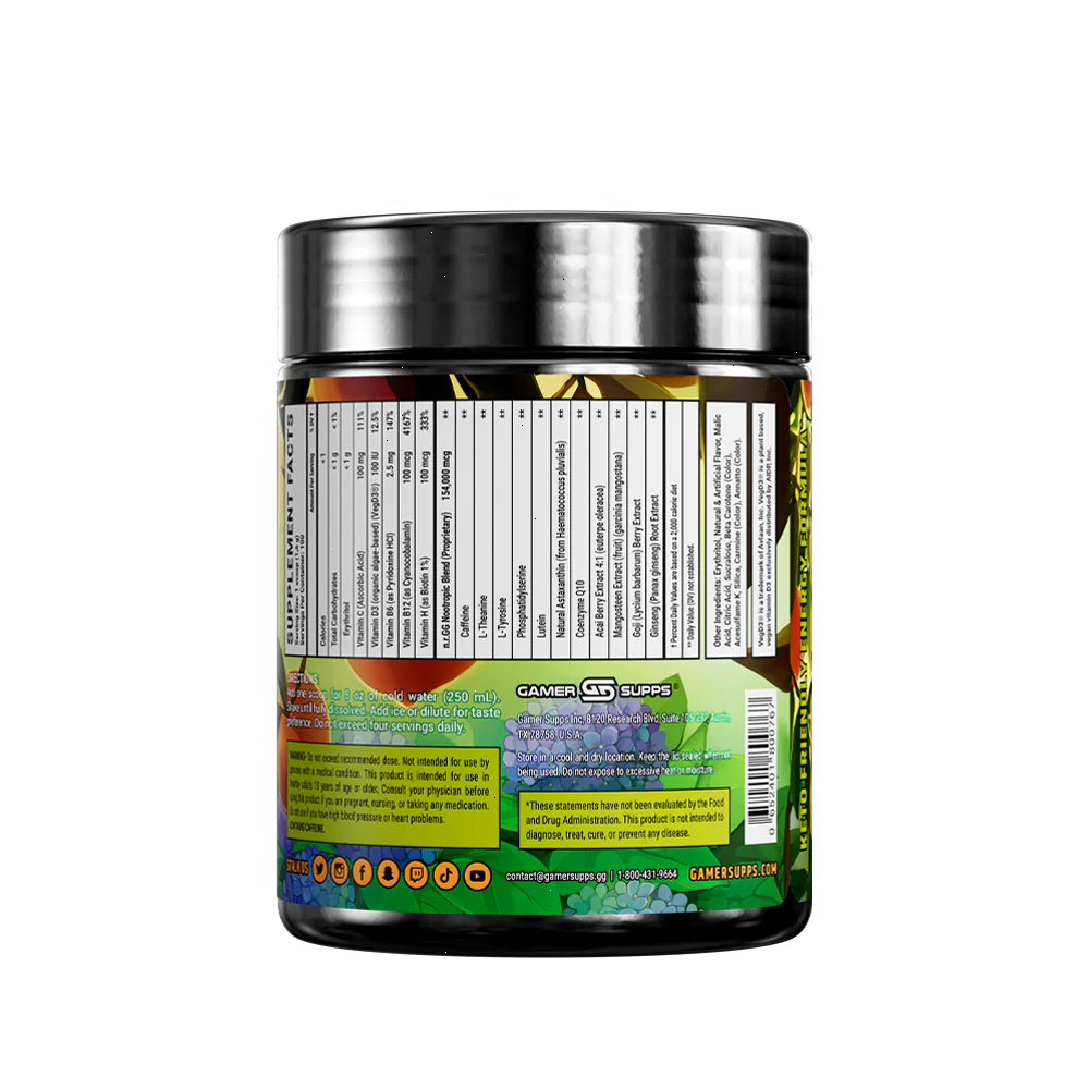 GG® is the ultimate energy and focus formula designed to Level Up Your Gaming. The highest quality ingredients make up an energy formula that mixes completely and provides a healthier and more cost-effective energy drink.