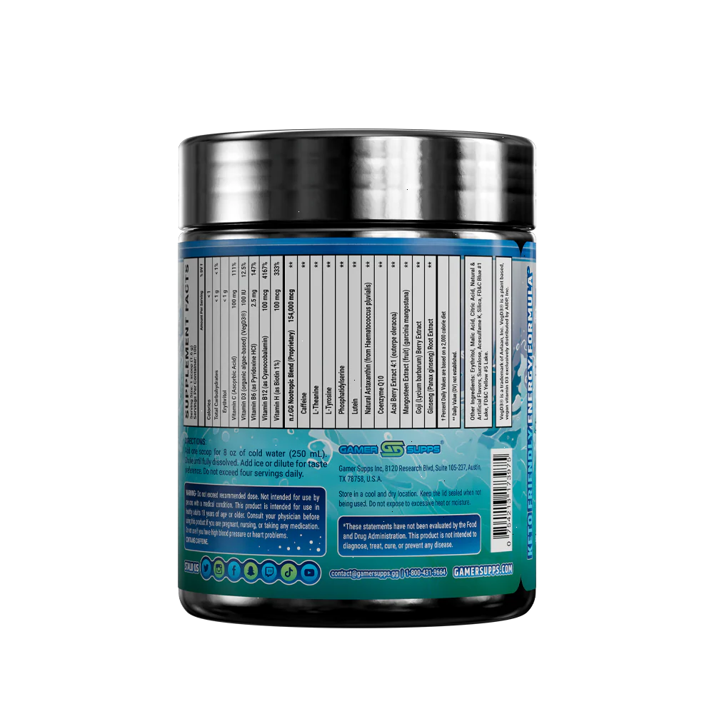 GG® is the ultimate energy and focus formula designed to Level Up Your Gaming. The highest quality ingredients make up an energy formula that mixes completely and provides a healthier and more cost effective energy drink.