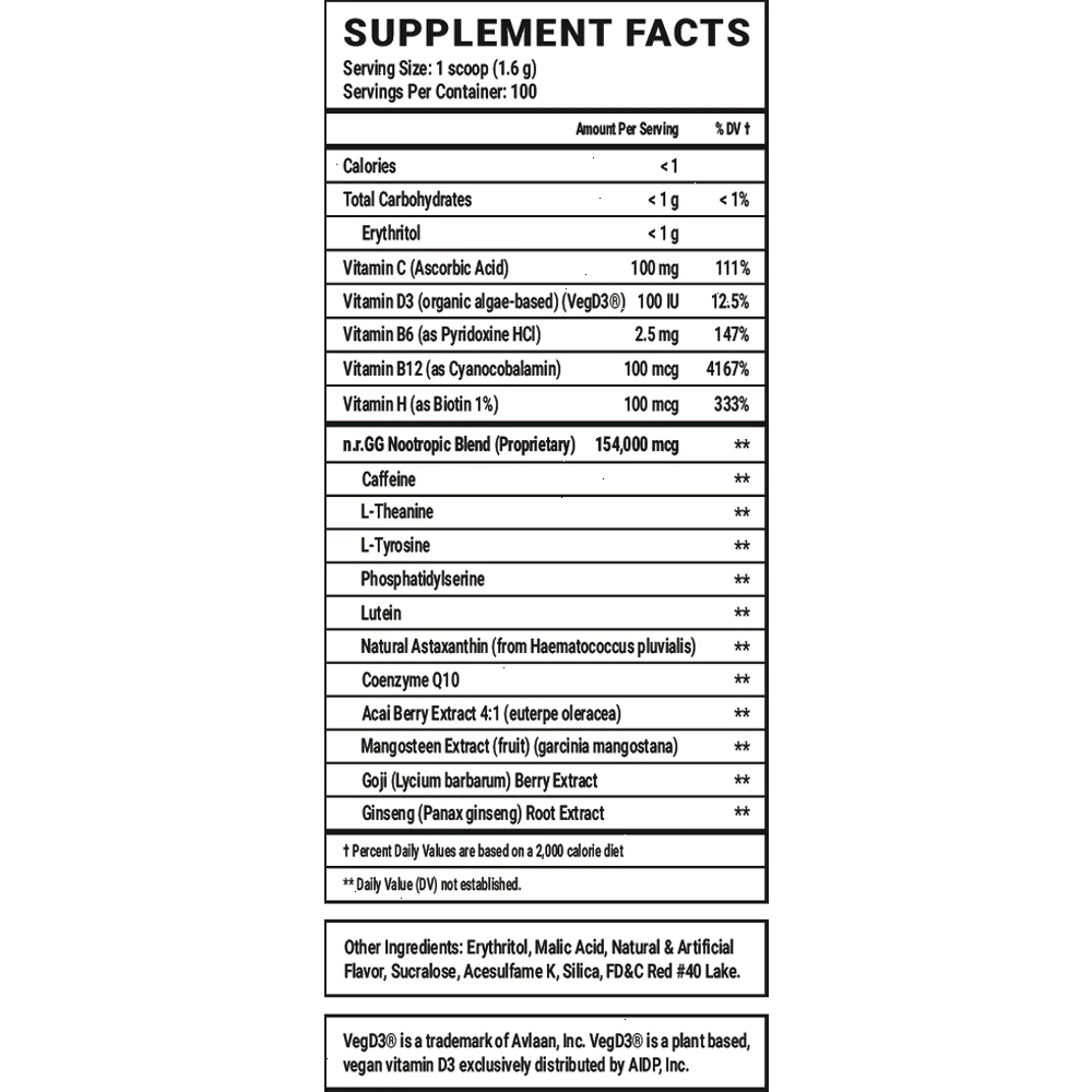 GG® is the ultimate energy and focus formula designed to Level Up Your Gaming. The highest quality ingredients make up an energy formula that mixes completely and provides a healthier and more cost-effective energy drink.