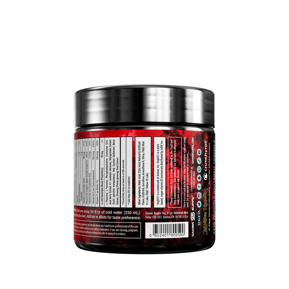 Experience Jujutsu Kaisen's Cursed Energy collaboration with Gamer Supps—a tantalizing Raspberry Tea that awakens your senses. With its sweet raspberry aroma, each sip unveils a captivating blend of fruity and tart flavors. This elixir ignites your own cursed energy for physical and virtual adventures, empowering you to conquer any challenge. Let Cursed Energy be your companion on the journey ahead.