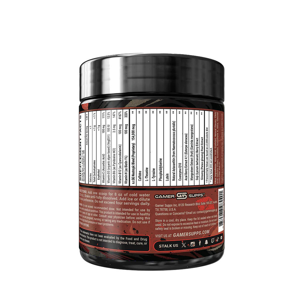 GG® is the ultimate energy and focus formula designed to Level Up Your Gaming. The highest quality ingredients make up an energy formula that mixes completely and provides a healthier and more cost effective energy drink.