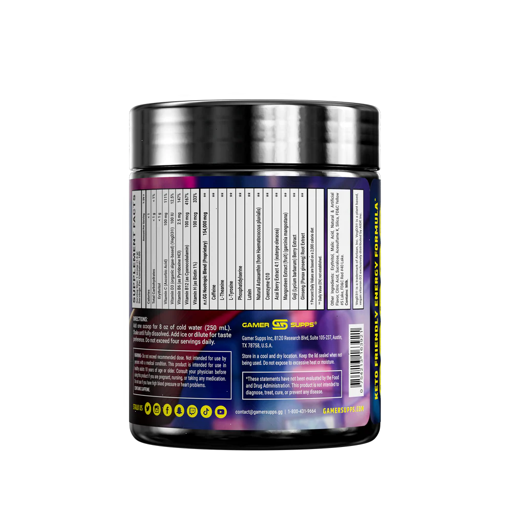 GG® is the ultimate energy and focus formula designed to Level Up Your Gaming. The highest quality ingredients make up an energy formula that mixes completely and provides a healthier and more cost effective energy drink.