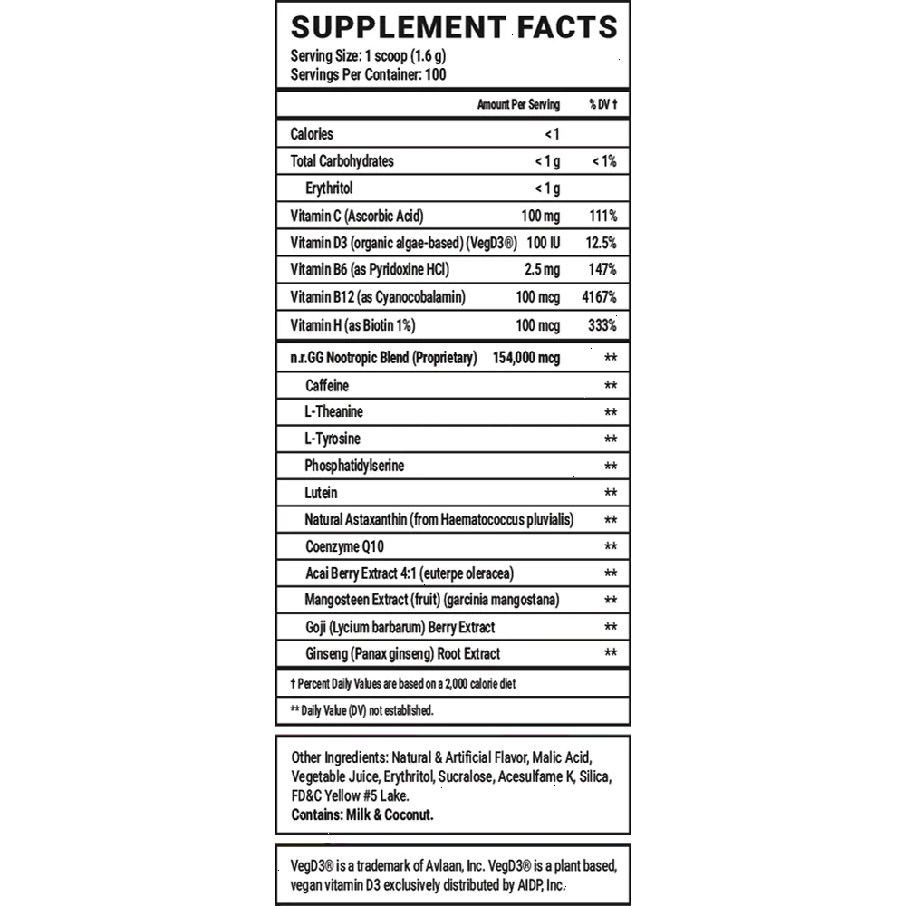 GG® is the ultimate energy and focus formula designed to Level Up Your Gaming. The highest quality ingredients make up an energy formula that mixes completely and provides a healthier and more cost-effective energy drink.