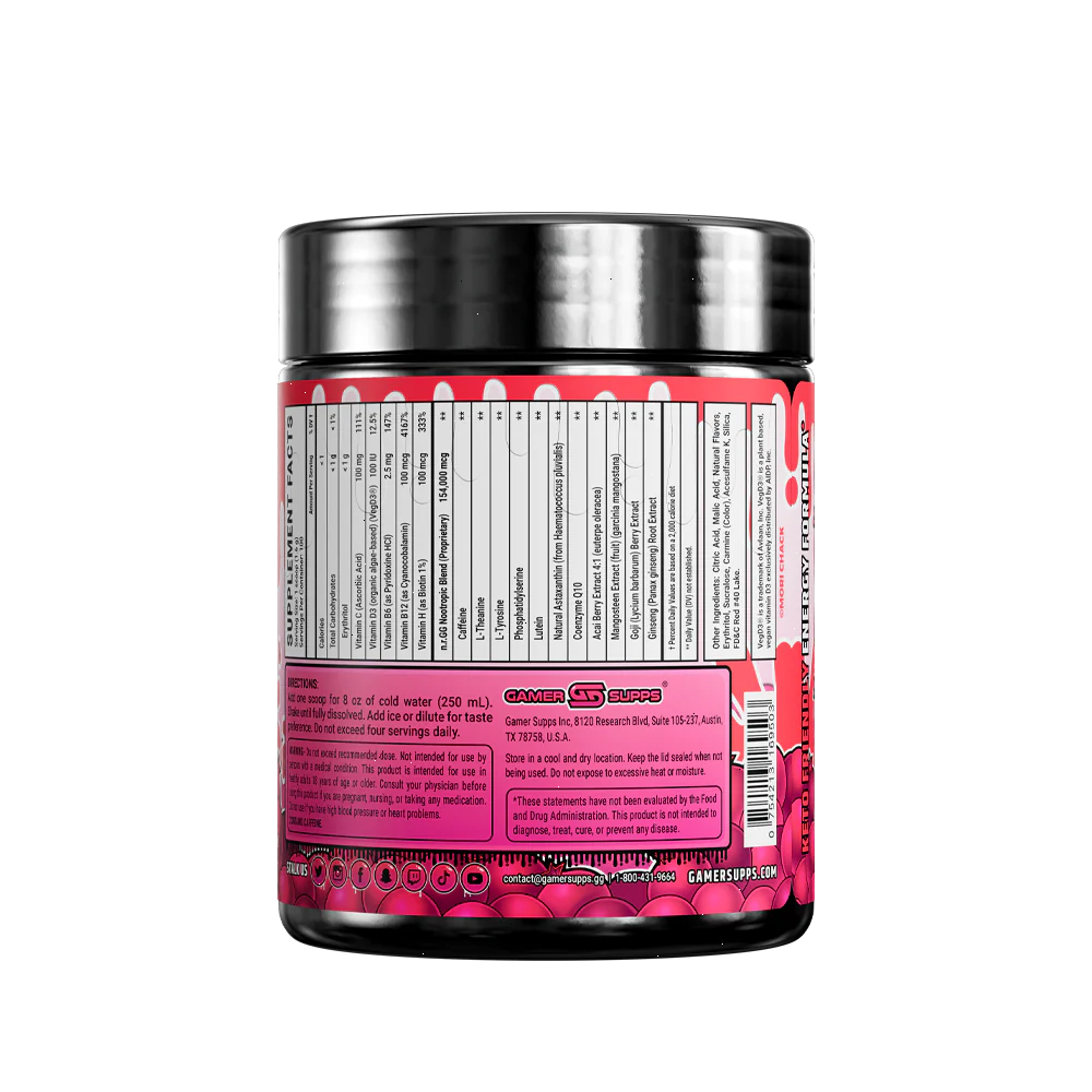 GG® is the ultimate energy and focus formula designed to Level Up Your Gaming. The highest quality ingredients make up an energy formula that mixes completely and provides a healthier and more cost effective energy drink.