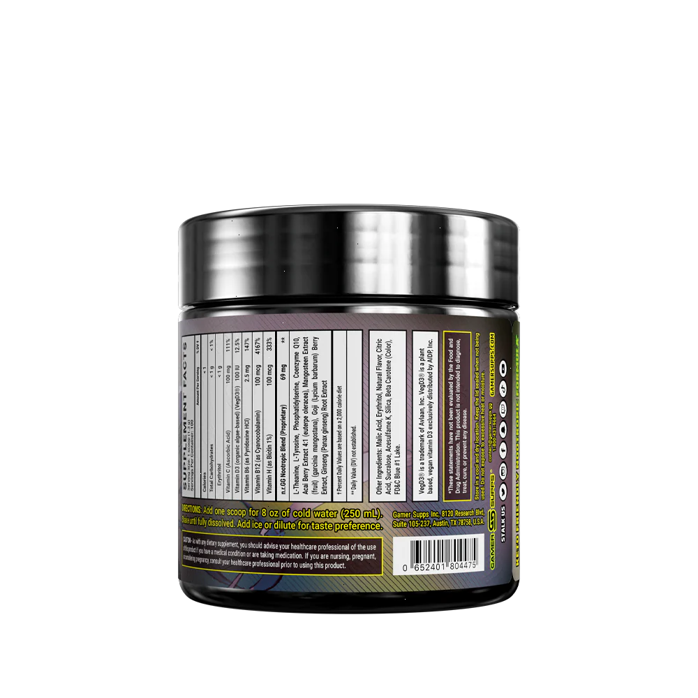 GG® is the ultimate energy and focus formula designed to Level Up Your Gaming. The highest quality ingredients make up an energy formula that mixes completely and provides a healthier and more cost effective energy drink.